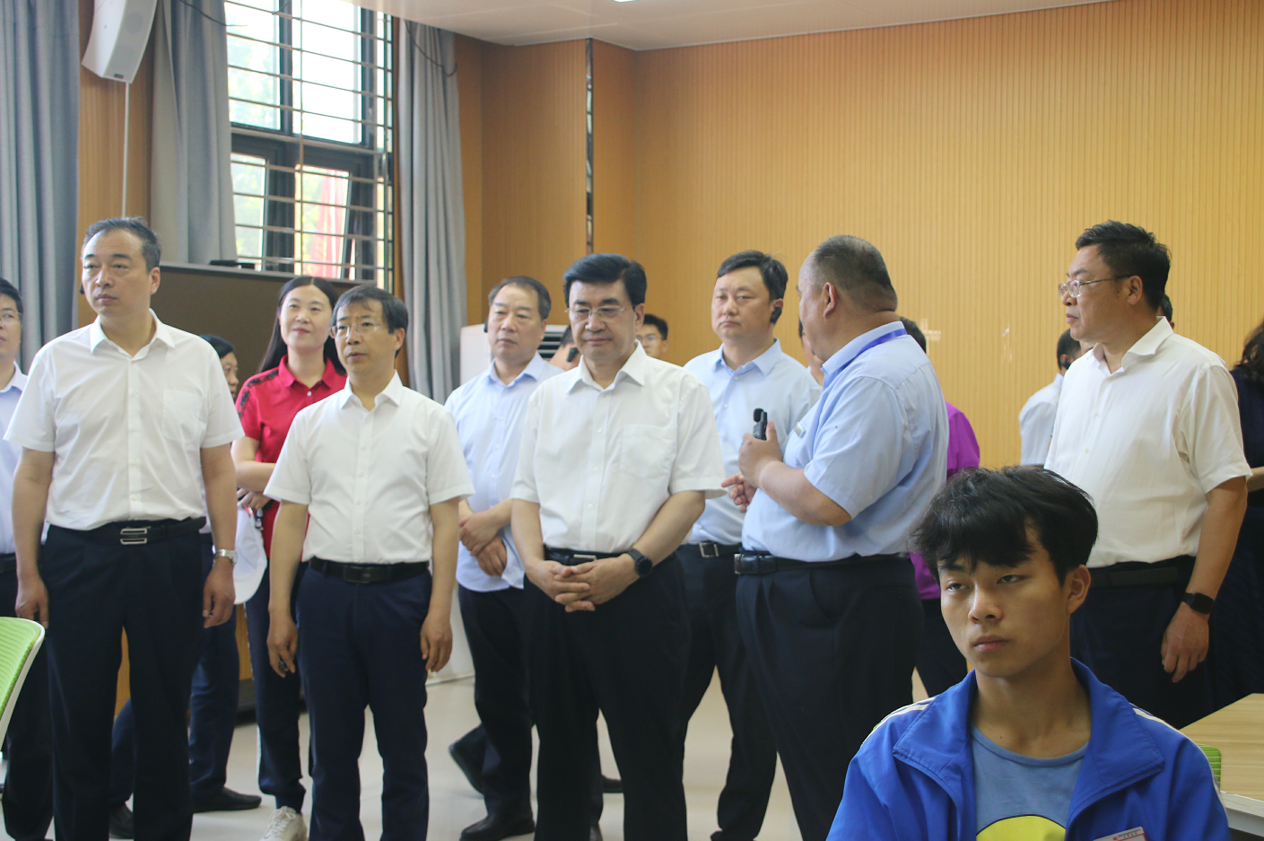 6月14日,河南省人大常委会党组成员、副主任何金平带队莅临濮阳县职教中心开展《河南省职业培训条例》执法检查暨驻豫全国人大代表专题调研。驻豫全国人大代表、河南省教育厅厅长毛杰等,驻濮全国人大代表、濮阳市委书记万正峰等同志作为调研组成员参加调研,濮阳市长朱良才、市人大常委会主任邵景良,濮阳县委书记周东柯、县长刘锐、县人大主任邱国让等市、县领导陪同调研。